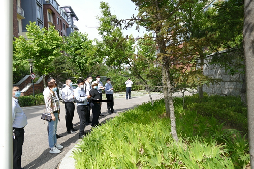 在视察物业服务过程中,每到一个项目,吴振山主席都要走遍小区的各个角落,路面、绿化、水系、电梯、垃圾处理、日常服务和疫情防控等各项问题,一路走、一路看、一路问、一路记,对于不足之处进行现场指导,对于物业服务提出更高的要求。